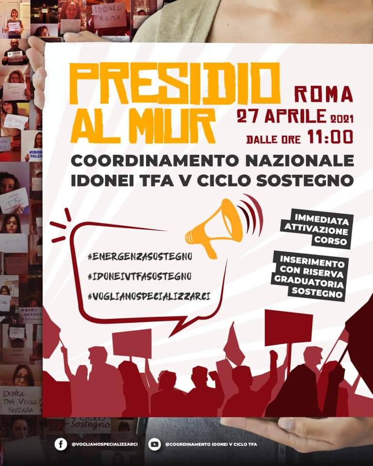 I docenti risultati idonei alle selezioni del V ciclo dei Percorsi di Specializzazione per le attività di sostegno didattico agli alunni con disabilità (TFA sostegno) non si danno per vinti e, dopo il presidio organizzato il 17 marzo scorso, si ritroveranno domani, 27 aprile alle 11 davanti al MIUR per ottenere risposte chiare.