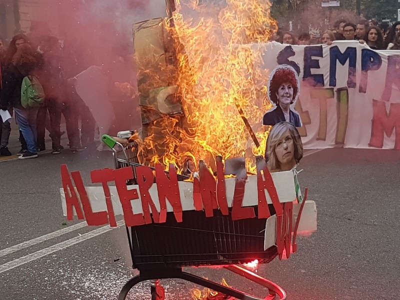 Brutto episodio a Torino con gli studenti che hanno bruciato un carrello con le immagini di Fedeli e Giannini, gli ultimi due ministri dell’Istruzione.