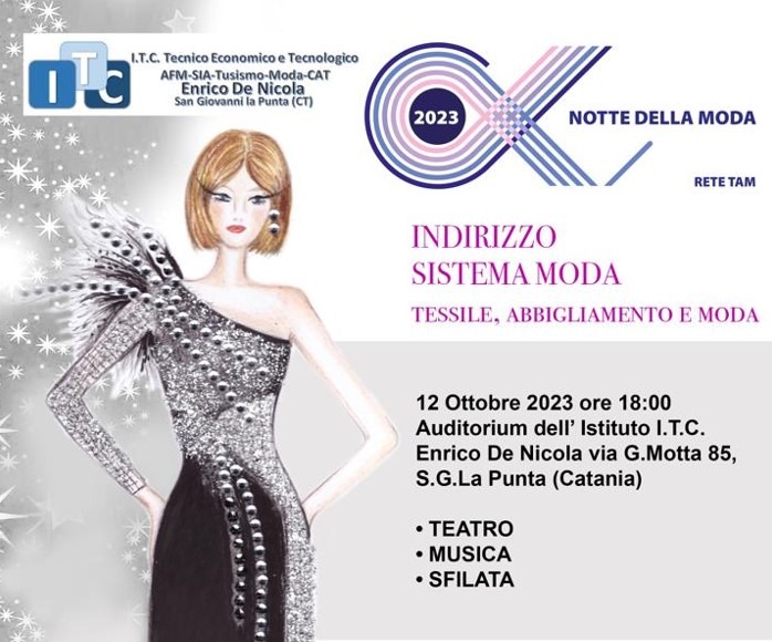 Con il fine di promuovere gli indirizzi del Sistema Moda, evidenziando le interessanti opportunità occupazionali di un settore strategico per l’economia, il Centro Scolastico Polivalente De Nicola di San Giovanni La Punta (Catania) organizzerà la “La Notte della Moda” da un’idea della dirigente scolastica Elena Anna Giuffrida.