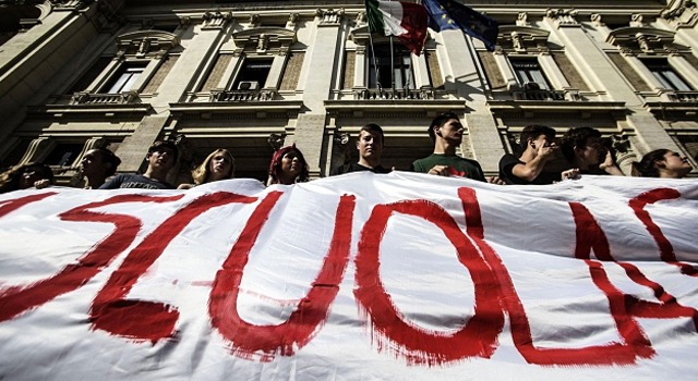 Il cordone umano si è stretto attorno ai professori che all’ingresso di via Giulia hanno descritto brevemente i motivi del flash mob, spiegando che in questo momento “c’è molta amarezza”.