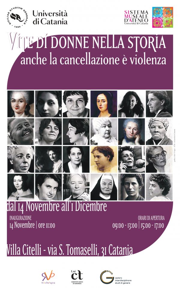 Martedì 14 novembre alle 11, a Villa Citelli (via Salvatore Tomaselli, 31), si inaugura la mostra “Vite di donne nella storia – Anche la cancellazione è violenza” organizzata dal Sistema Museale d’Ateneo, dal Comitato Unico di Garanzia e dal Coordinamento per le Pari Opportunità.